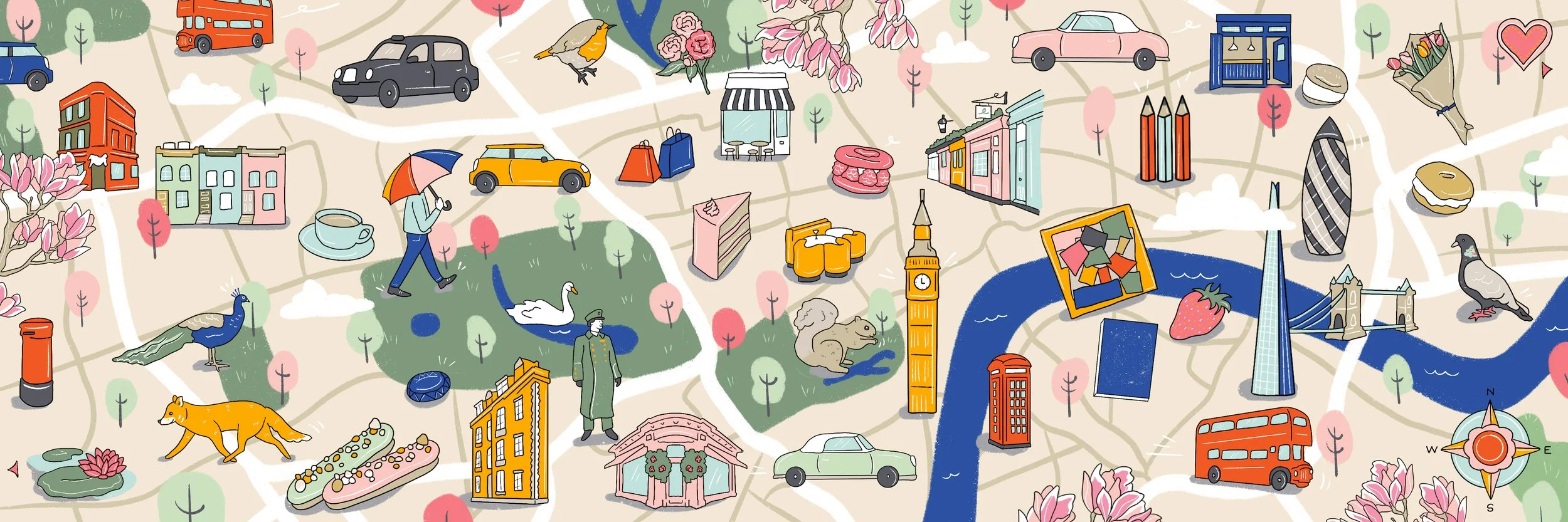 Illustrated map of London Sep 6 Written By Megan McKean New work of lovely London — an illustrated map of some of my favourite sights and famous icons of London town. Illustrated map of London by Megan McKean Megan McKean Colour obsessed author, illustrator, designer and travel writer http://www.mckeanstudio.com