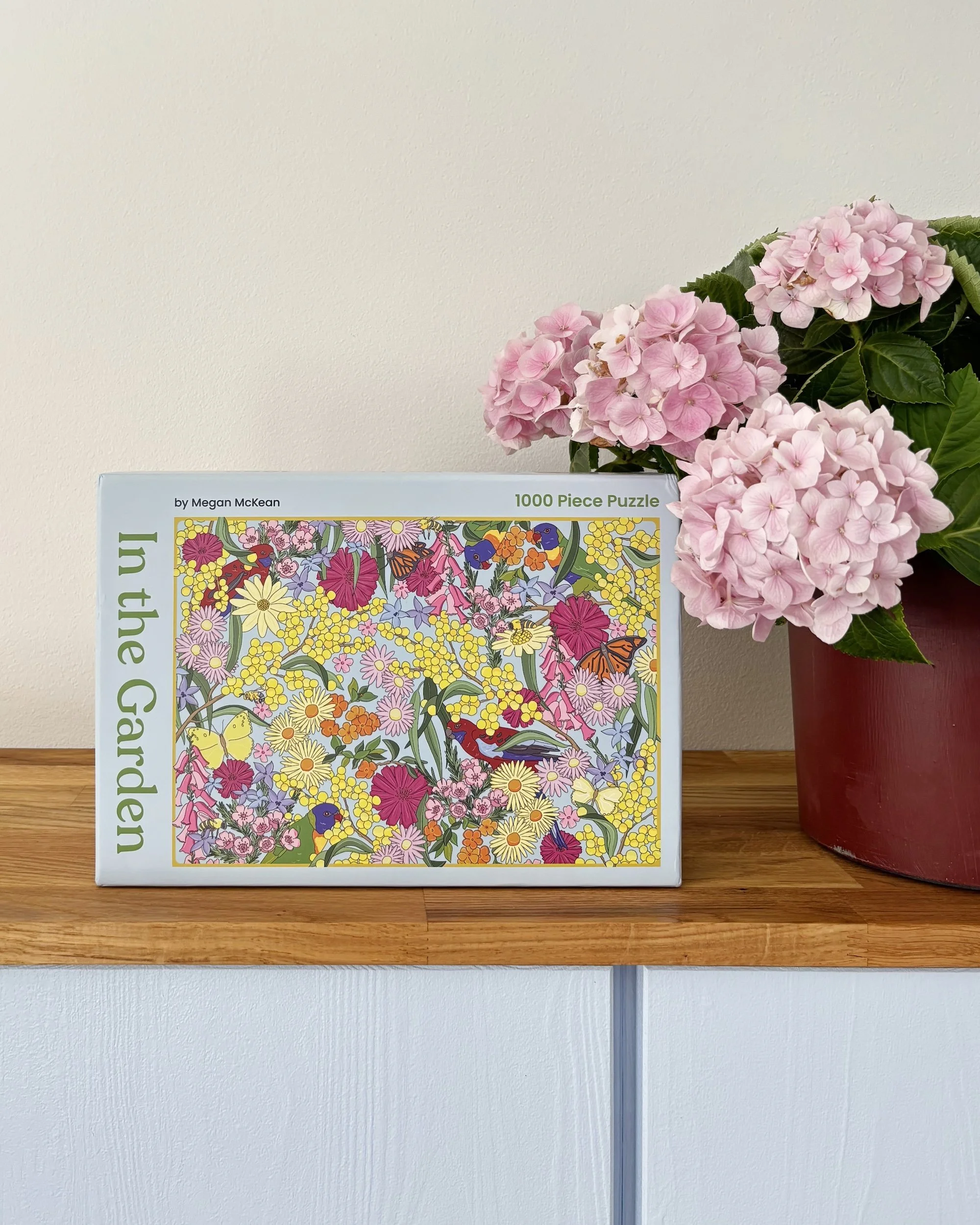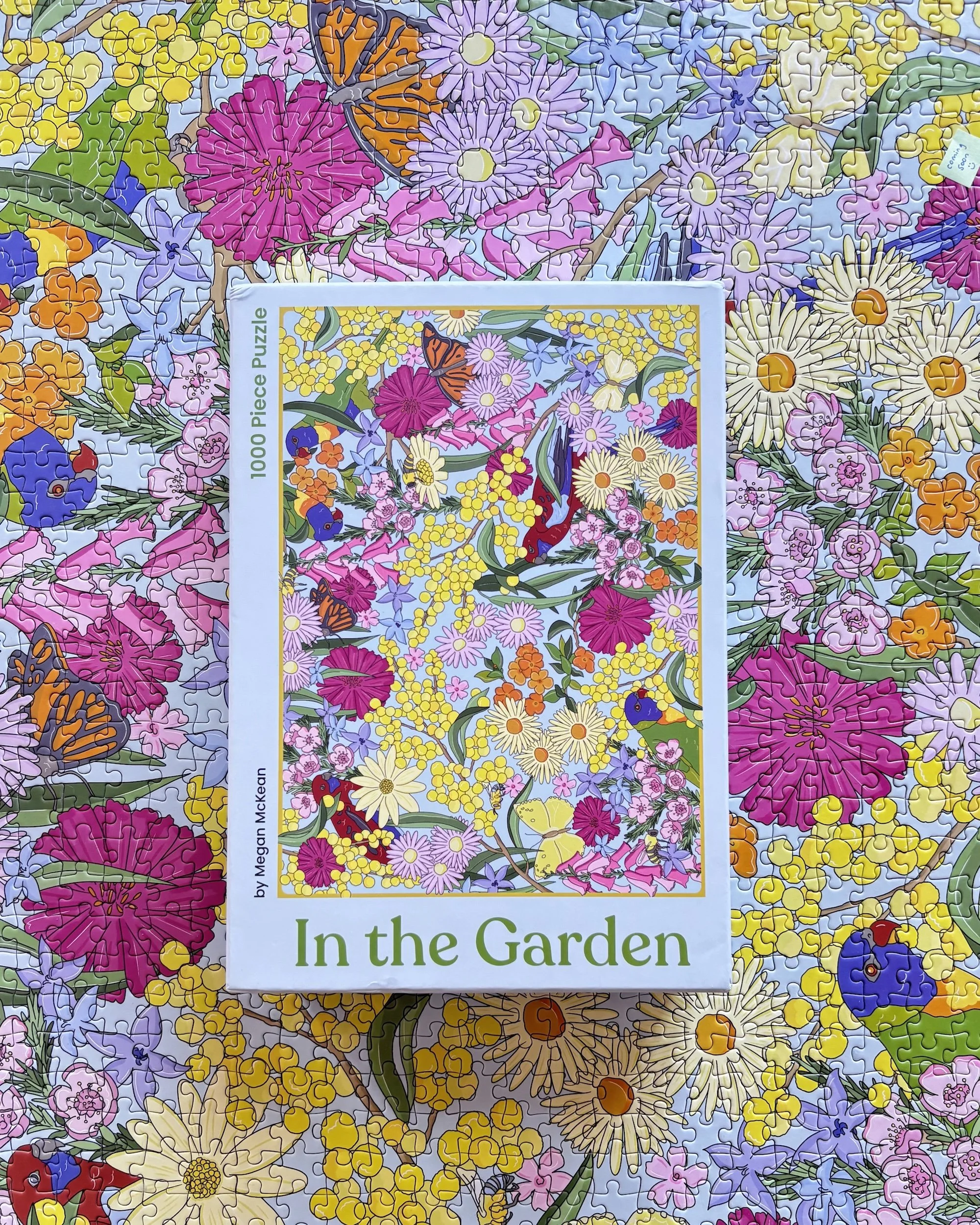 I’m just about to release a brand new project; ‘In the Garden’, a colourful 1000-piece illustrated puzzle, featuring a whole host of Australian bird and plant life. Butterflies, lorikeets and rosellas cover the scene, tucked into a variety of different florals and leaves. This was such a great project to work on — a wonderful challenge in illustrating for a puzzle with repeating elements while still maintaining a flow in the overall scene.