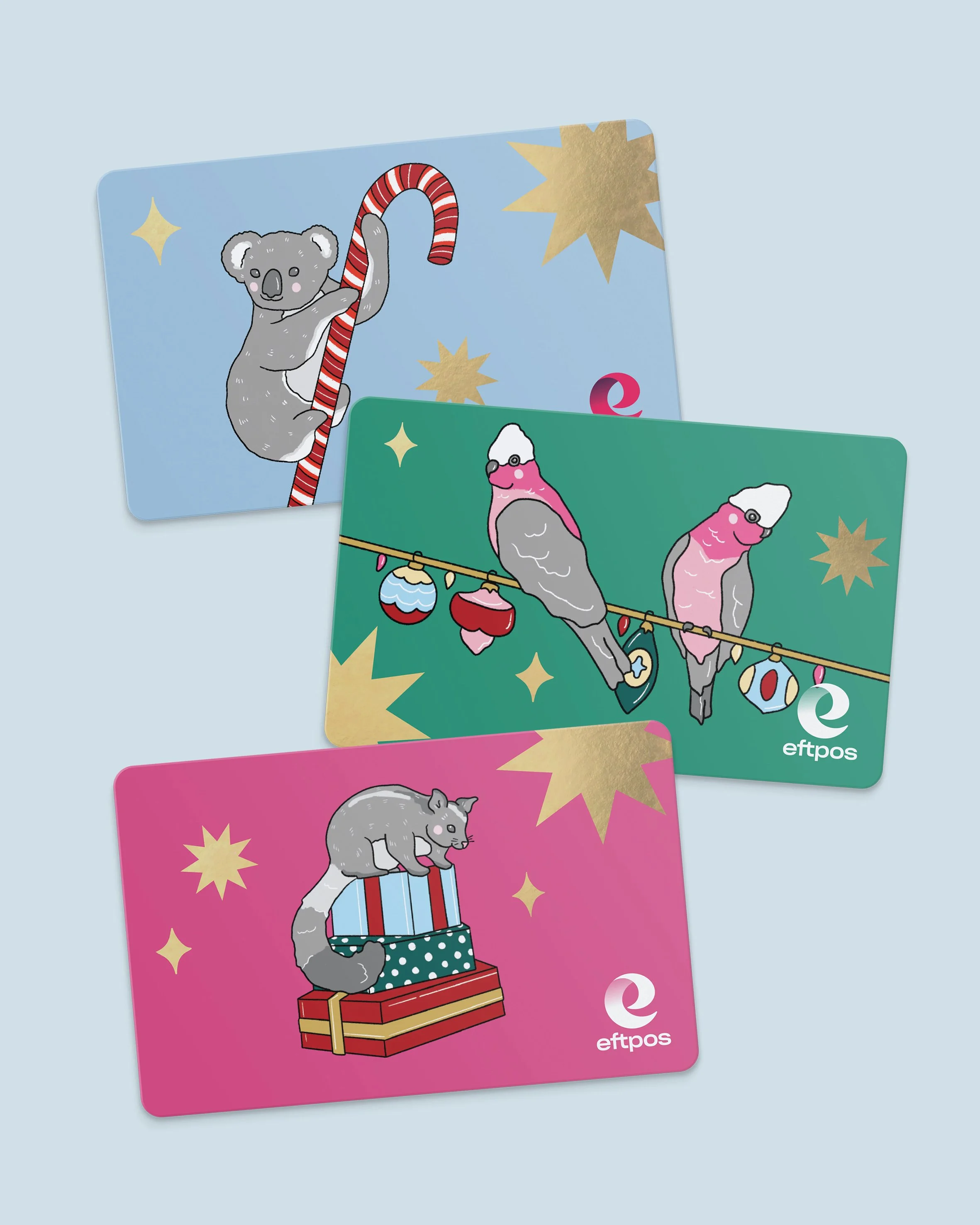 The festive feelings are well and truly underway, with Christmas projects completed in April finally making it out into the world, and the end of the year sneaking up — trying to make the most of every twinkly light and shiny bauble while I can! One of my favourite festive projects of the year; a range of pre-paid Eftpos cards exclusive to Woolworths. If you're in Woolies this December, keep an eye out! I love thinking of all the little cards brightening up wallets this Christmas.