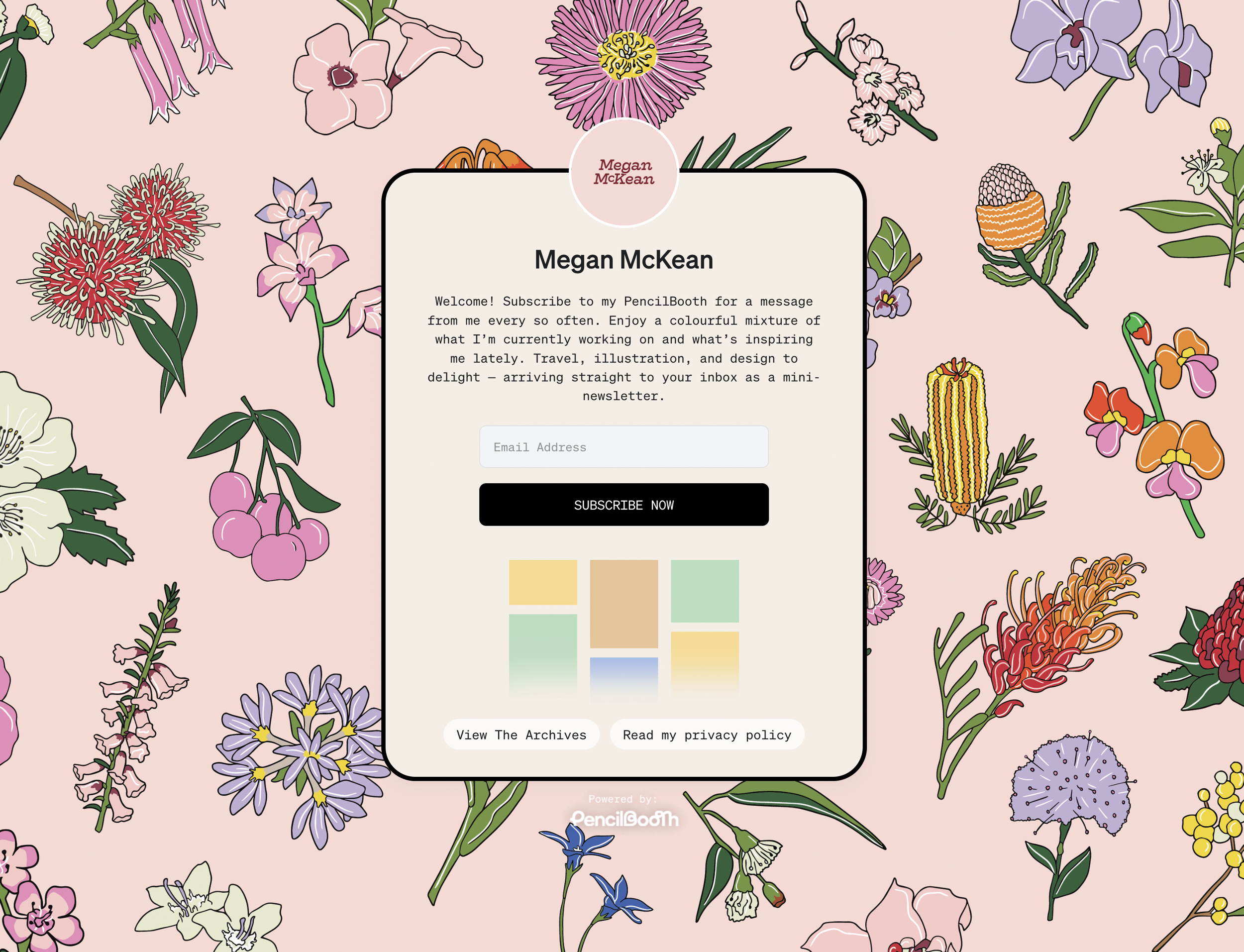 I’ve recently joined the new newsletter service, PencilBooth — created by the clever-clogs at artist agency Jacky Winter, PencilBooth is a platform for artists to send out a curated, micro-newsletter, with a maximum of 1 take per week. There’s no algorithm, no advertising, and nothing spammy! I’m planning to use mine to share recent work, and what’s currently inspiring me; I’ve just sent out my first issue and am looking forward to sending out each week.