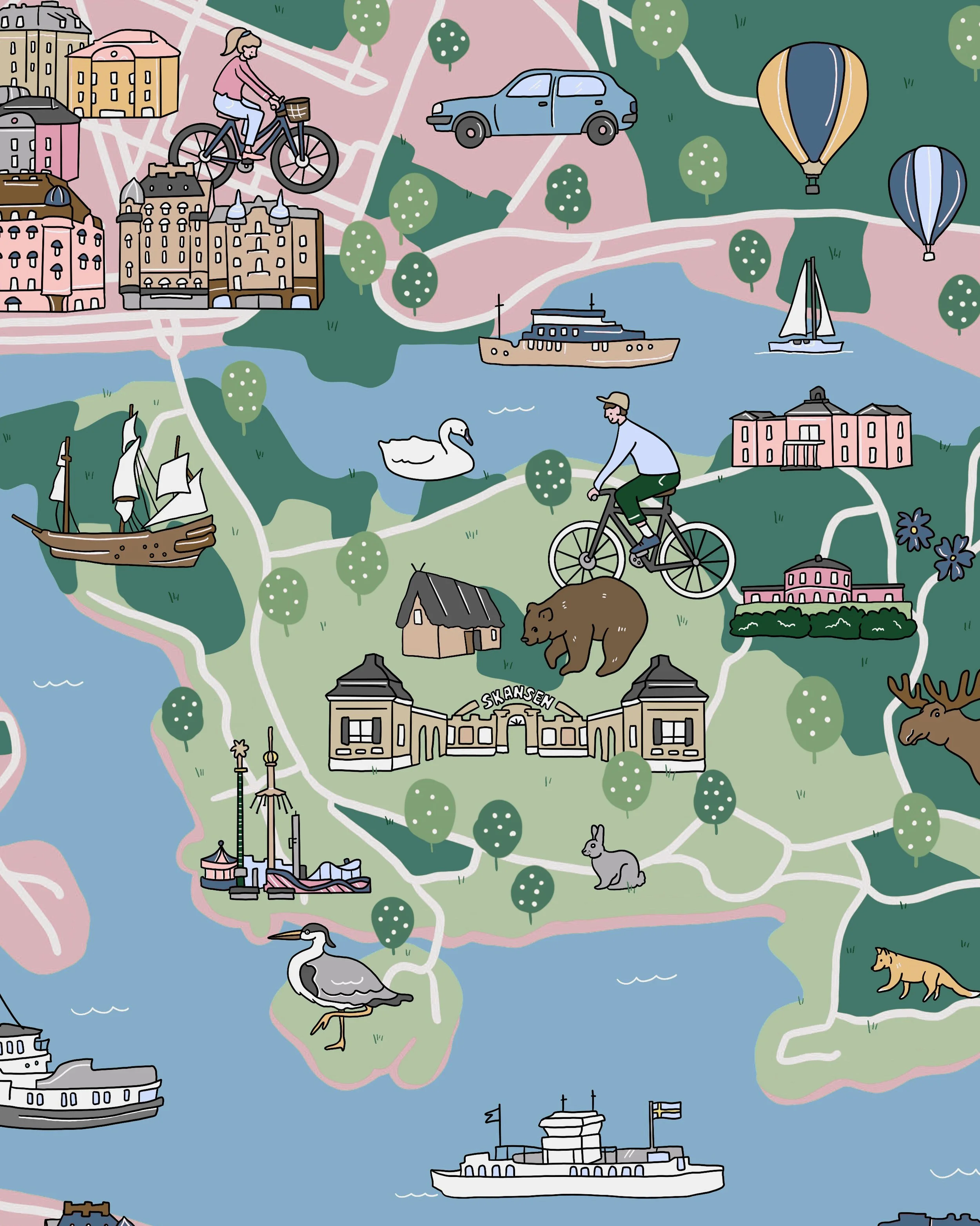After working on these illustrations of Stockholm and Tokyo recently, the art direction shifted slightly and I found myself reworking with a bit of a new focus; maps! I’ve been really enjoying working on illustrated maps lately, and hope to keep growing my collection of my illustrated versions of places around the world that I love to visit.