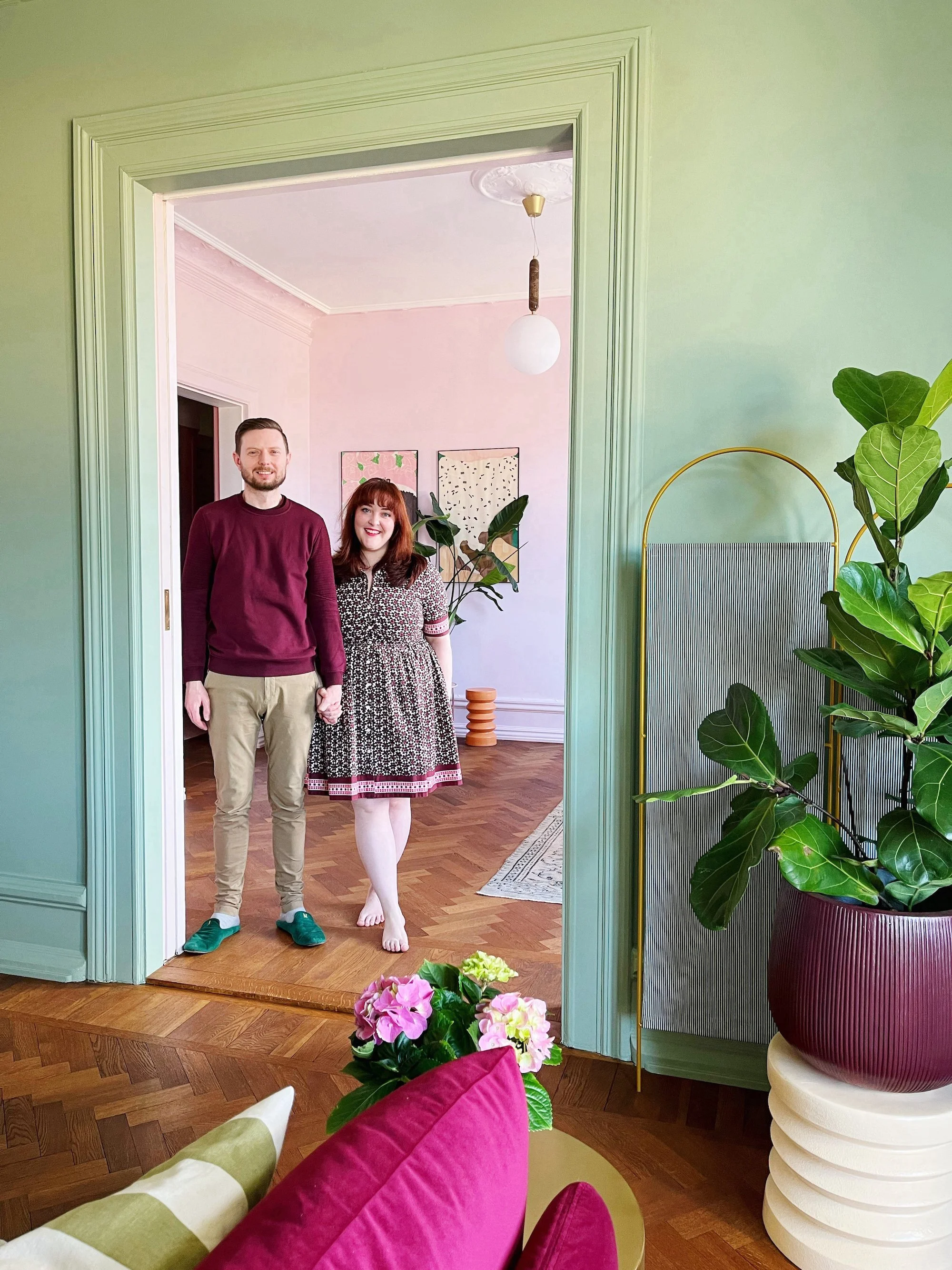 A year on and there are no design regrets in the house… only a slight wish that I’d painted our hallway pink sooner! We had originally painted it white but redid it in the raspberry pink after white just felt too boring! It was a good lesson for me to trust my gut and lean in to what I like — I know I won’t get sick of pink, so I might as well go with it! With all of the rooms finished in the apartment now, I’m trawling the real estate sites most days ‘just to check’ for a tiny summer cottage that might need some love… or perhaps a pied-à-terre for another design challenge! I loved crafting all the pieces of our home and would love to do it all again some day!